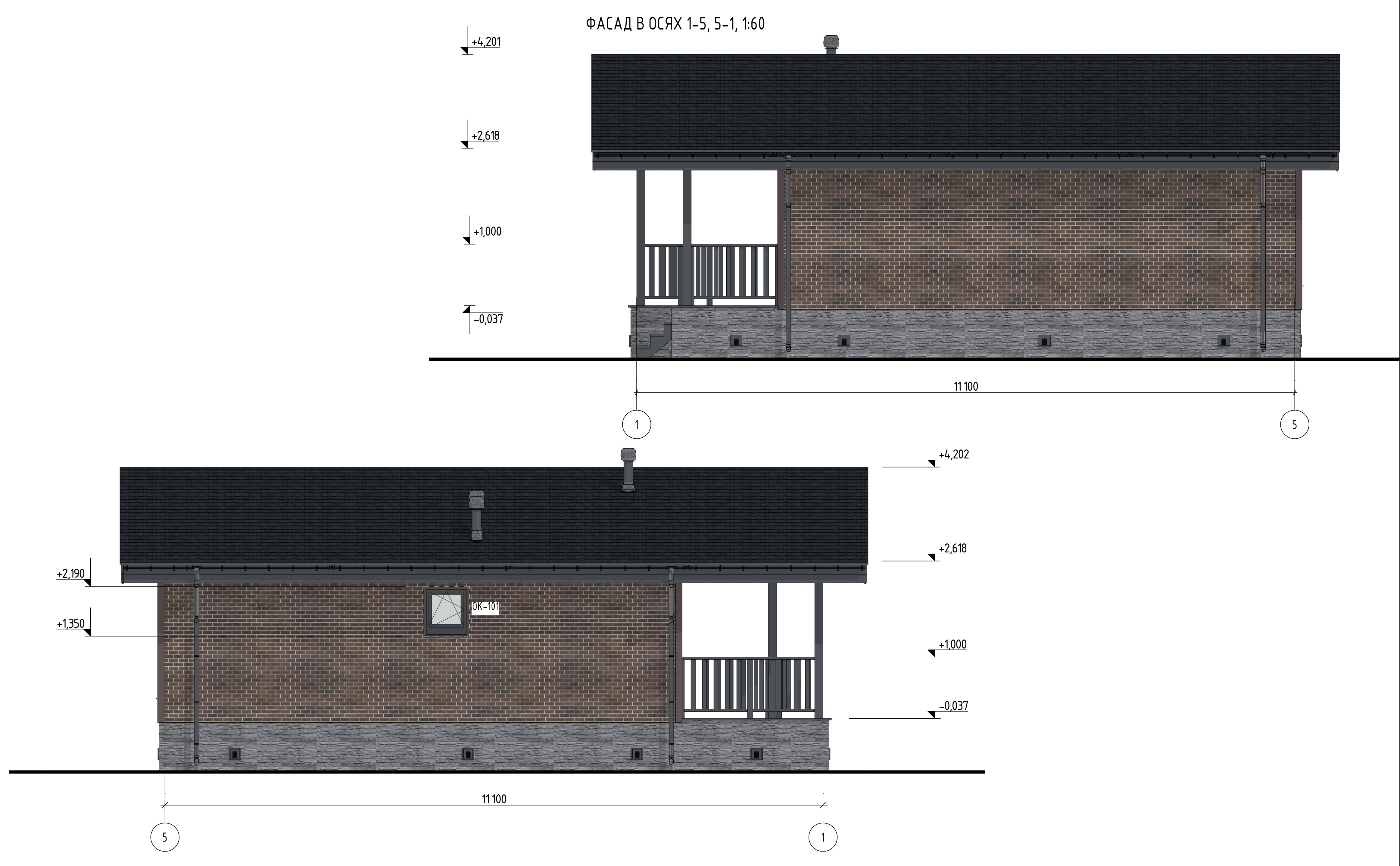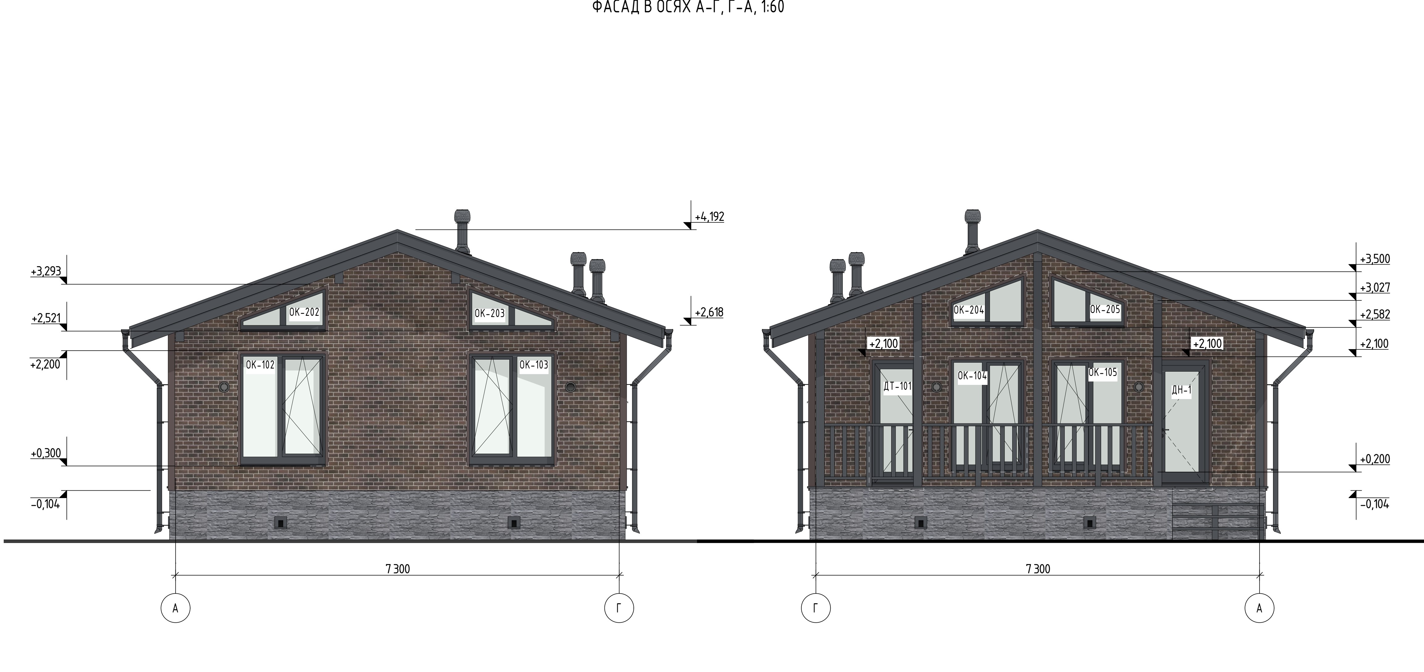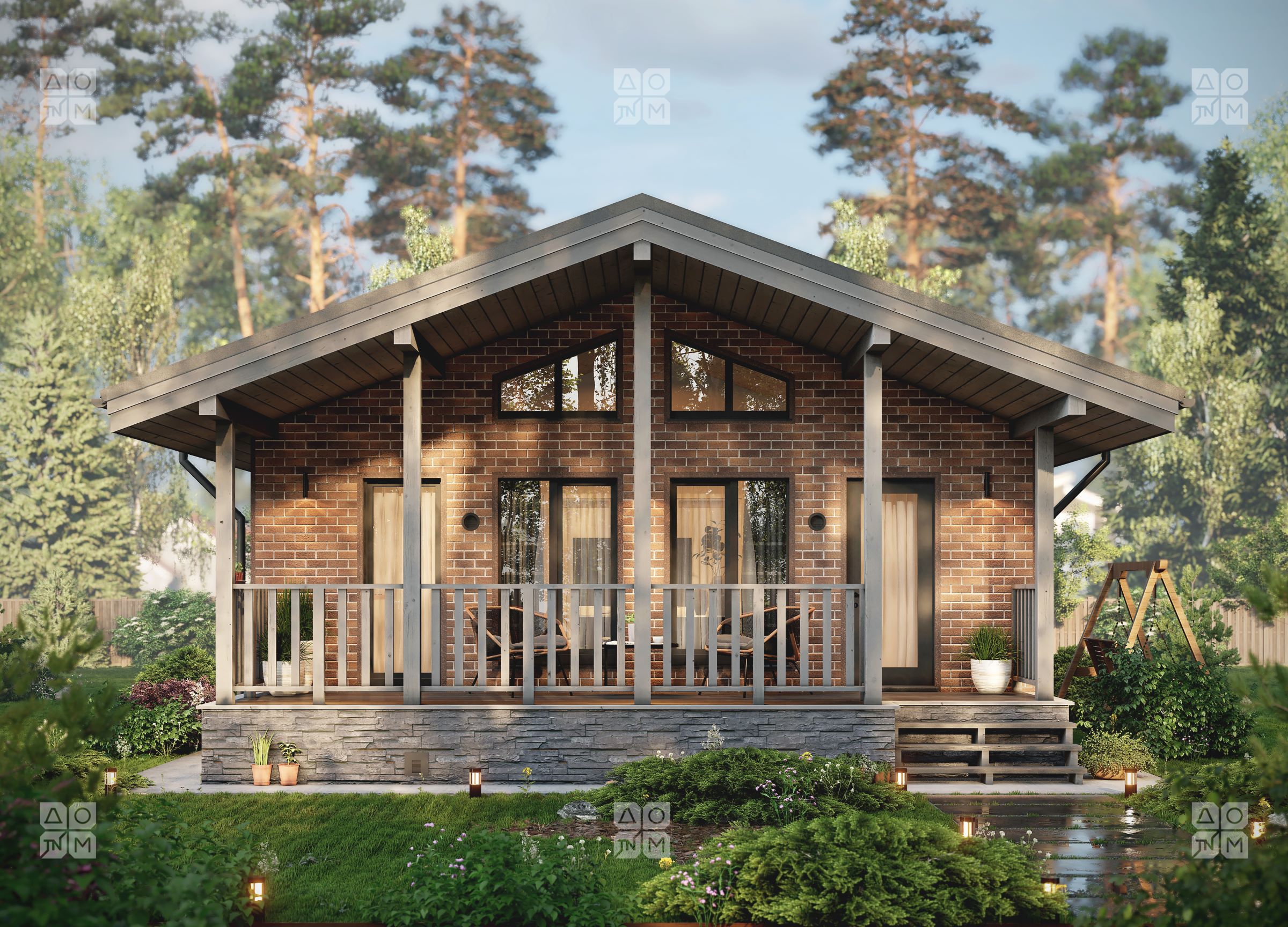 - Двускатная крыша: Классический архитектурный элемент, придающий дому элегантный и завершенный вид.