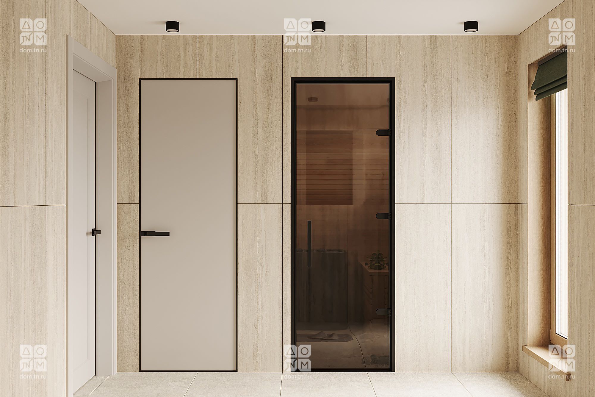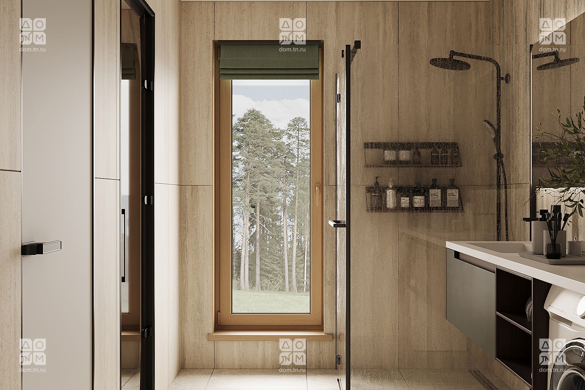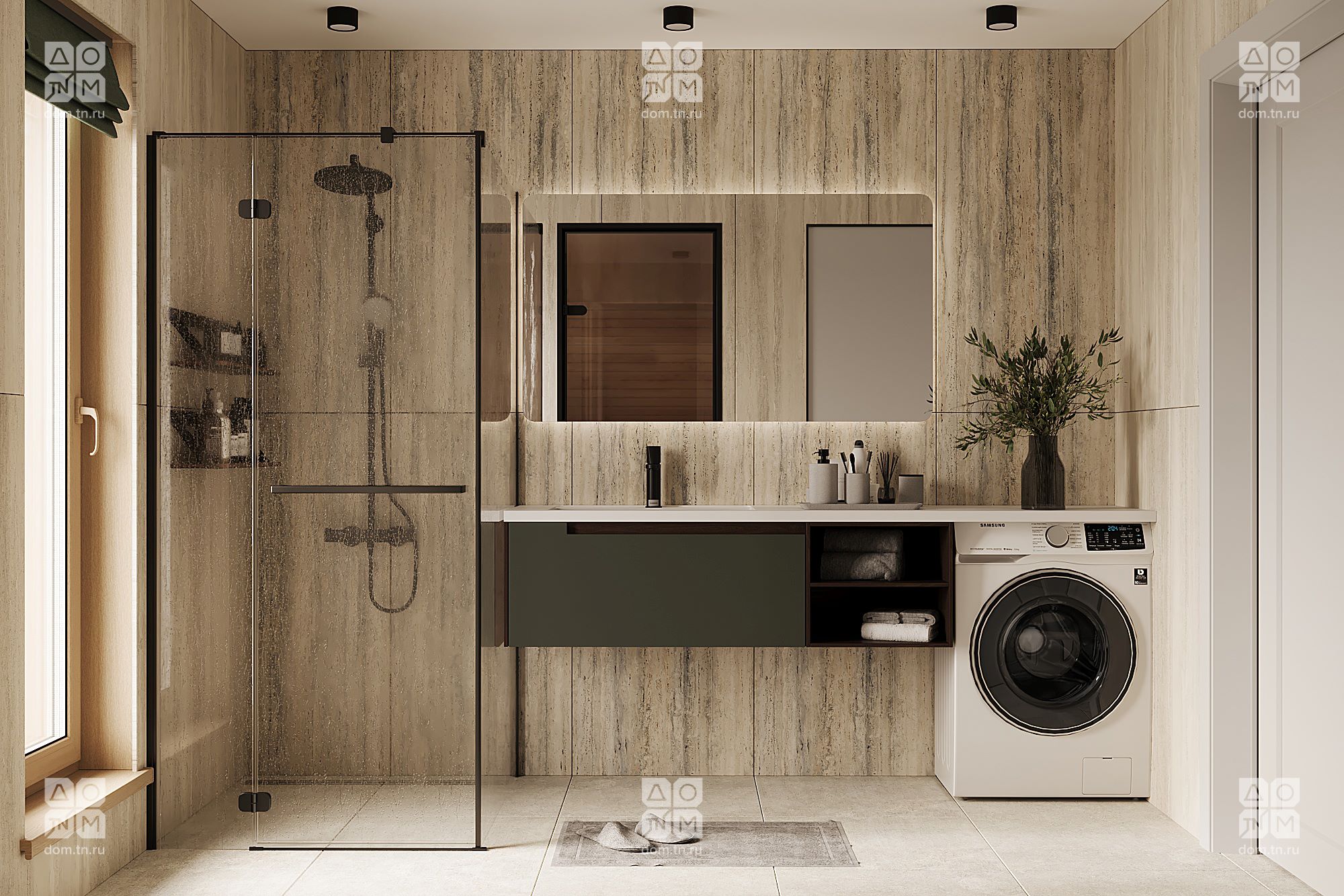В результате, обычная ванная комната преобразилась в персональный СПА-салон. Теперь здесь есть сауна, отдельный туалет, душевая площадью почти шесть квадратных метров с местом для стиральной машины — практичность также была учтена. Вместо душевой кабины можно установить ванну — места достаточно. Представьте себе ароматические свечи, тихую музыку и приглушенное освещение. Позвольте себе момент релаксации.