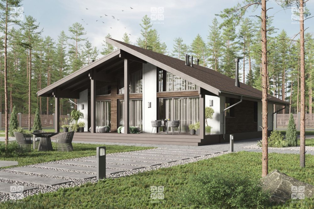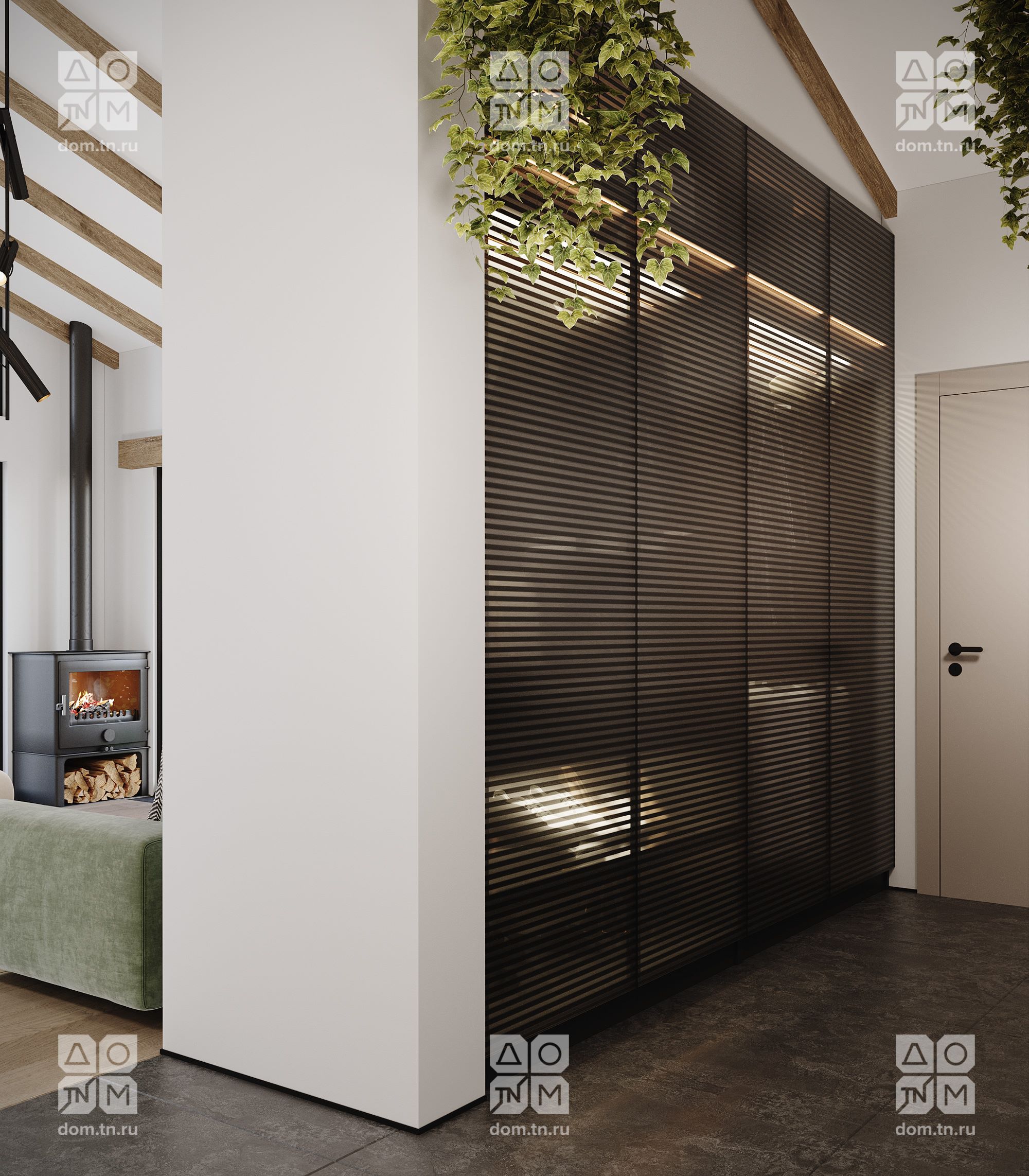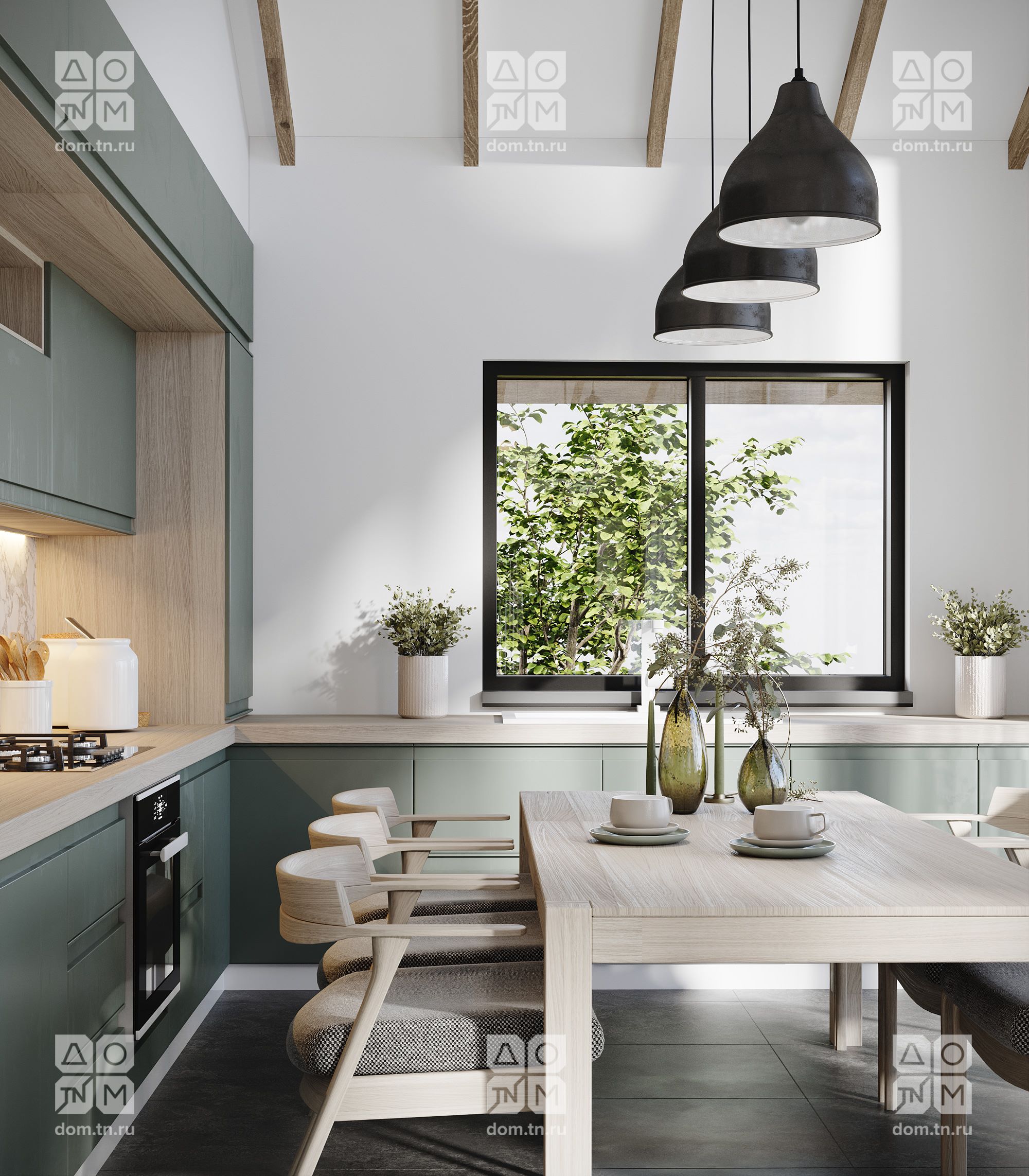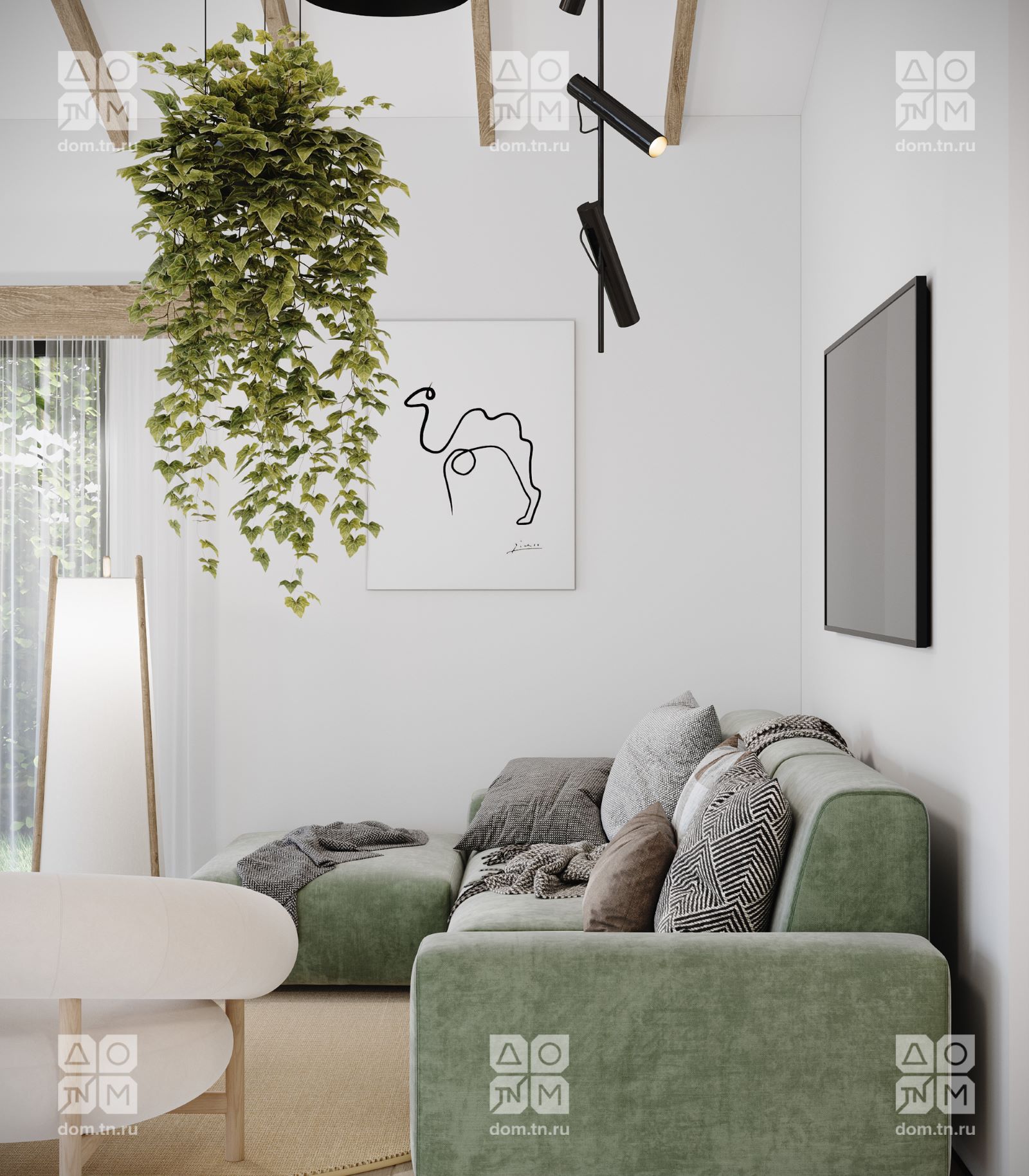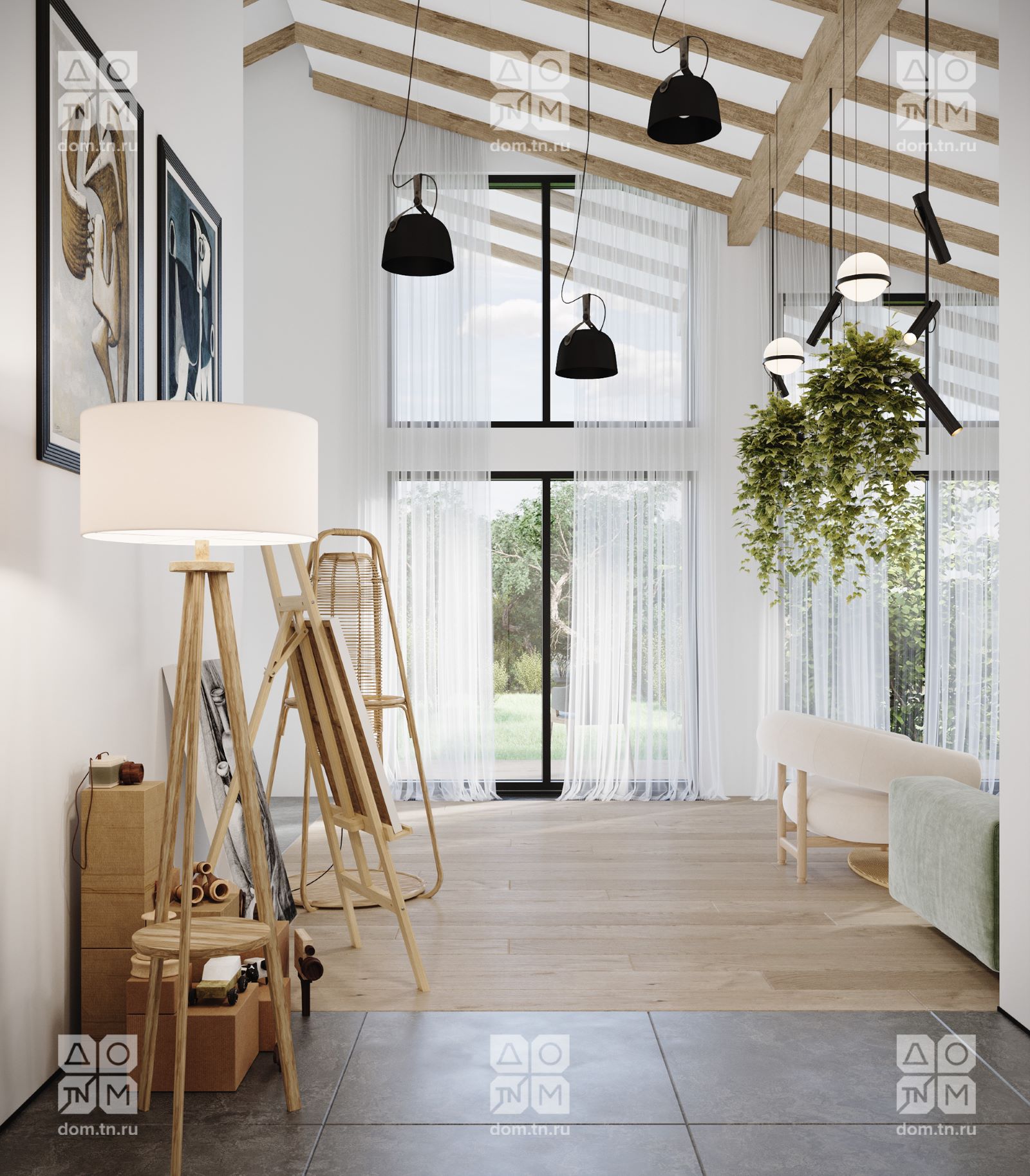 Терраса с навесом, открытая с трех сторон, практически удваивает площадь гостиной. Здесь свободно размещается обеденная группа и мягкая зона отдыха. В теплое время года терраса становится полноценным местом для жизни – для игр с детьми, приема гостей, наблюдения за восходом и закатом, задушевных бесед и наслаждения пением птиц.